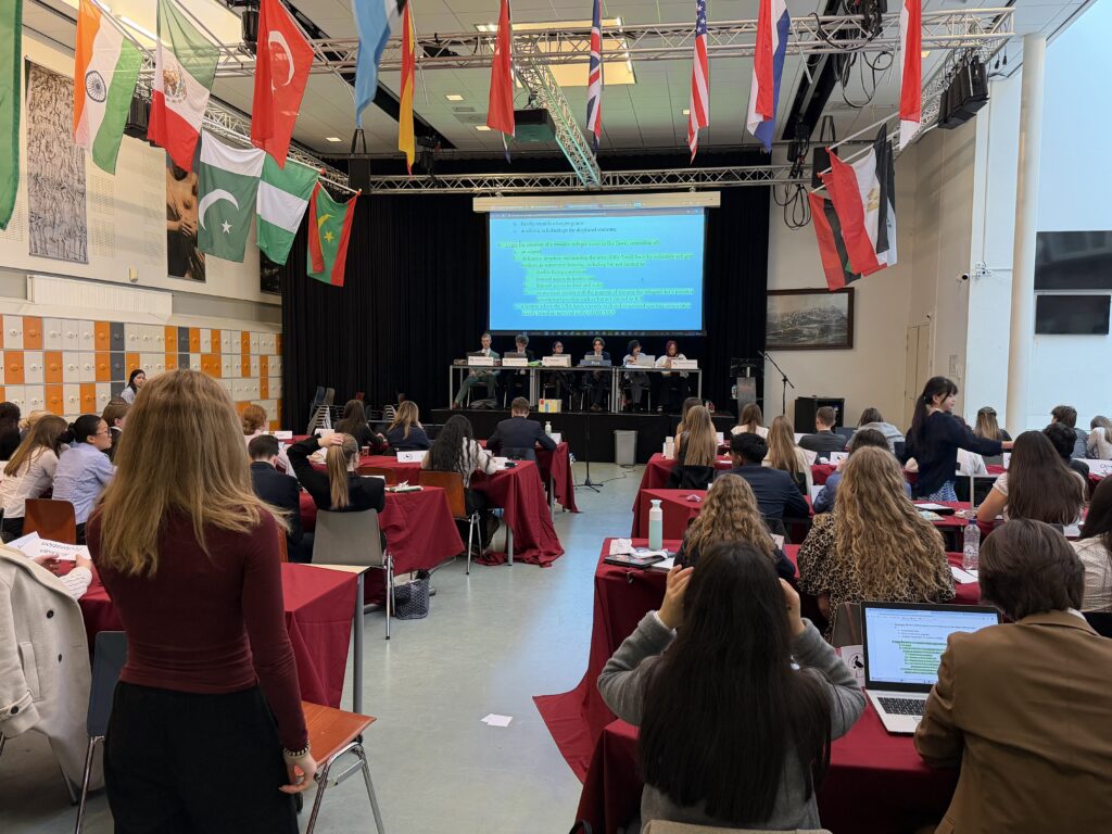 Jeder MUN Konferenz, die übrigens von Schülerinnen und Schülern der jeweiligen Gastschulen quasi im Alleingang organisiert wird, wird ein Kernthema übergeordnet, das in den meisten Komitees verhandelt wird – in Den Haag lautete es: „From Awareness to Action: Advancing gender equality in an unequal world“. Über dieses und andere Themen wurde von den Delegierten intensiv beraten und diskutiert, damit Resolutionen gemeinsam verfasst und verabschiedet werden konnten.