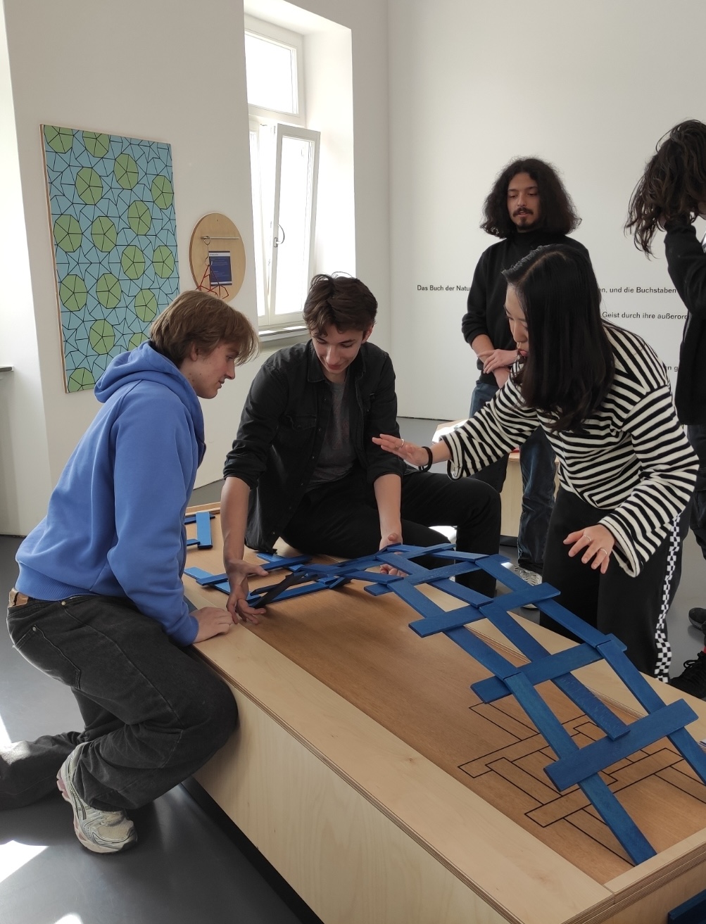 Im weiteren Verlauf erkundeten die Schülerinnen und Schüler die zahlreichen Exponate, die dazu einladen, mathematische Phänomene selbst auszuprobieren, nachzuvollziehen und einander zu erklären. Viele Stationen boten niedrigschwellige Zugänge ebenso wie vertiefende Herausforderungen, sodass für unterschiedliche Interessen und Herangehensweisen etwas dabei war.